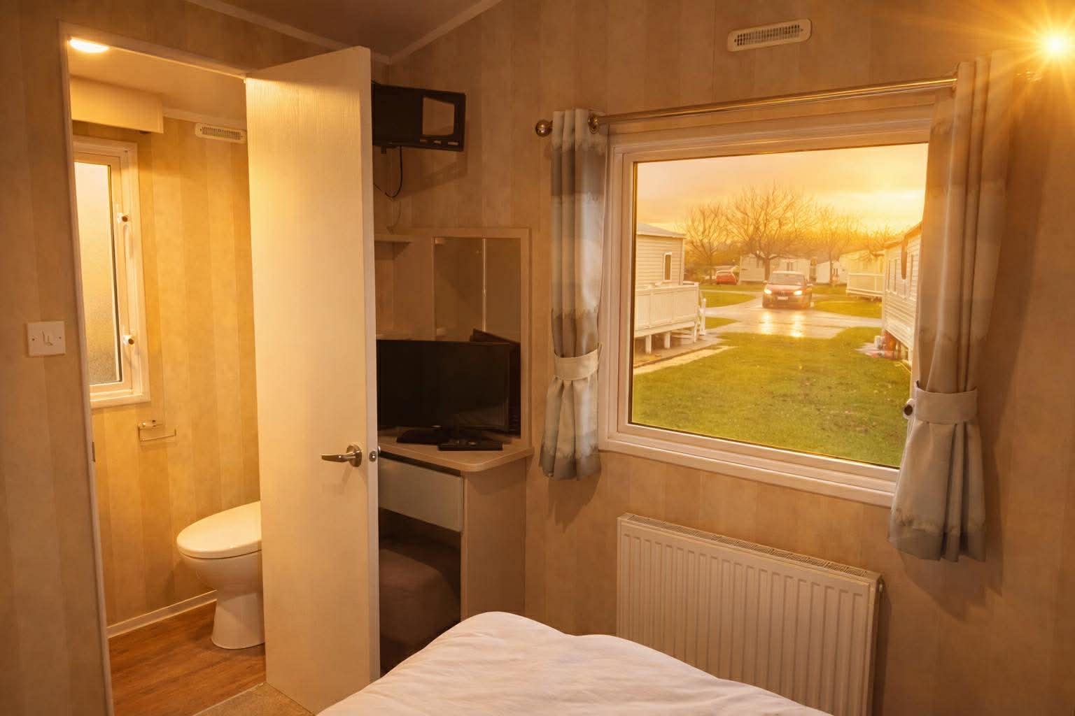 – Flat screen TV with free view for your entertainment.